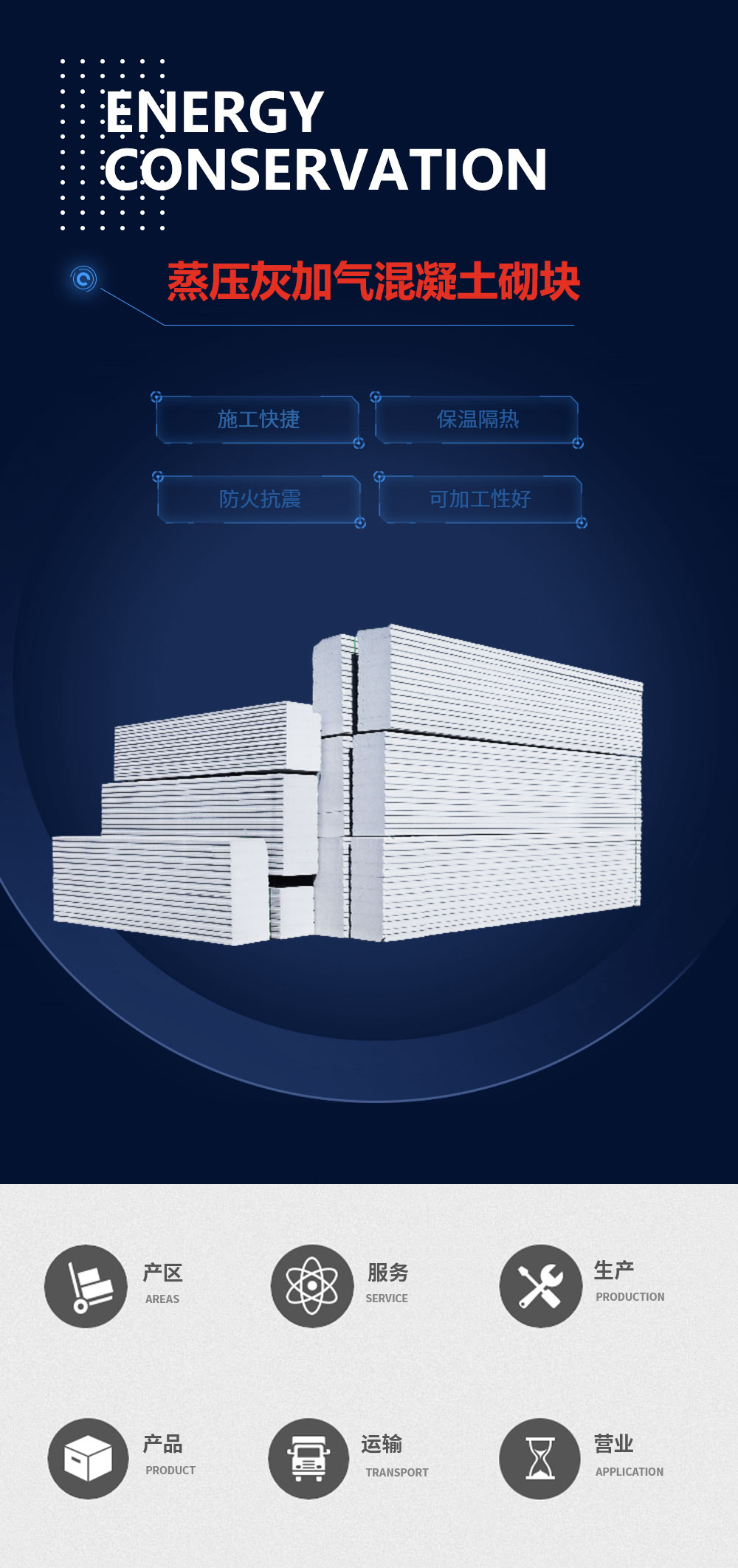 選用品質粉煤灰、石灰、水泥為原料制成的一種具有施工快捷、保溫隔熱、防火抗震、可加工性好等優點的輕質多孔材料。一塊砌塊相當于18塊紅磚,并可連續砌筑,不受砌筑的高度限制,可提高施工速度,降低勞動成本。